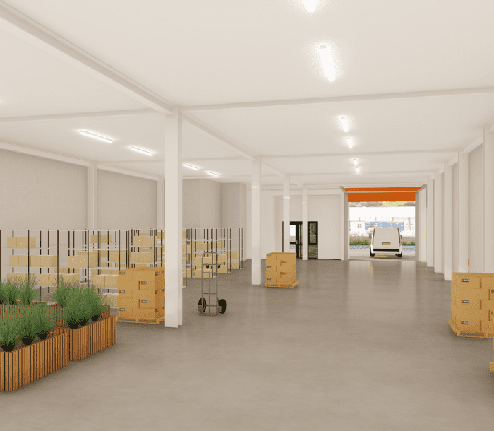 Unit 2 wordt opgesplitst in 12 bedrijfsunits van 30 m2 tot 60 m2.