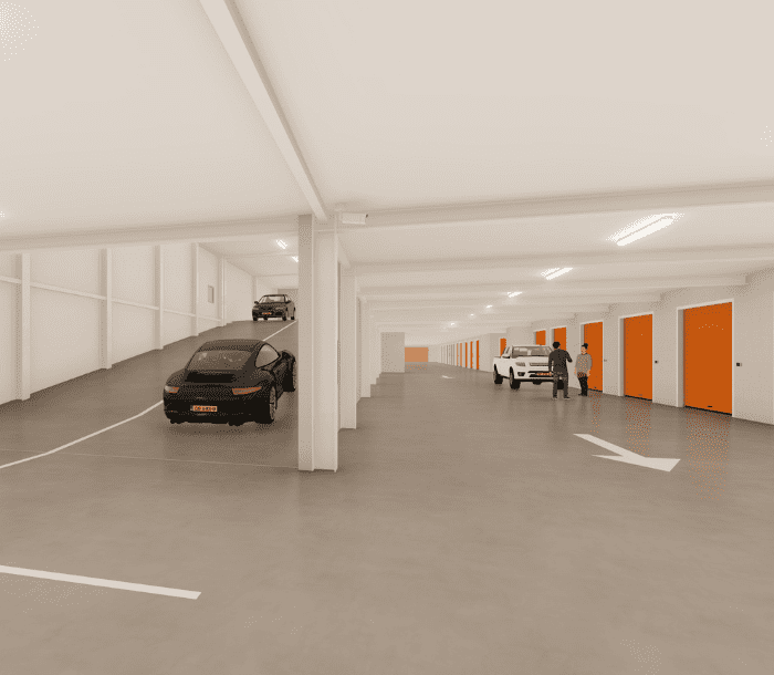 Indoor drive-in garagebox complex in Rotterdam voor zakelijk gebruik